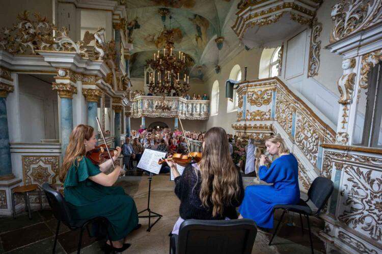 Ar mocartiski dzirkstošu, ešenvaldiski aizkustinošu mūziku un pjacolliski kaislīgu mūziku Ziemupes baznīcā klausītājus aizrāva Liepājas mežragu kvartets un vijolniece Līva Tomiņa.